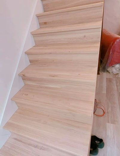 A képeken látható munkánknál tölgyből készült lépcsőlapokat és borovi fenyőből készült keretet készítettünk el, nagy odafigyeléssel és precíz illesztésekkel. Az eredmény egy meleg tónusú, elegáns és időtálló lépcső, ami a fa természetes szépségét hangsúlyozza.